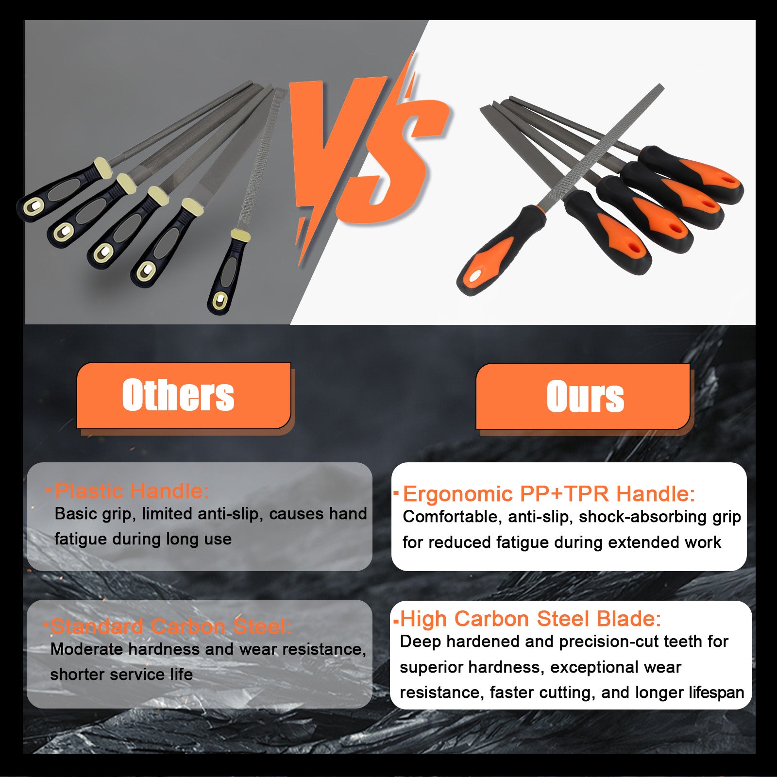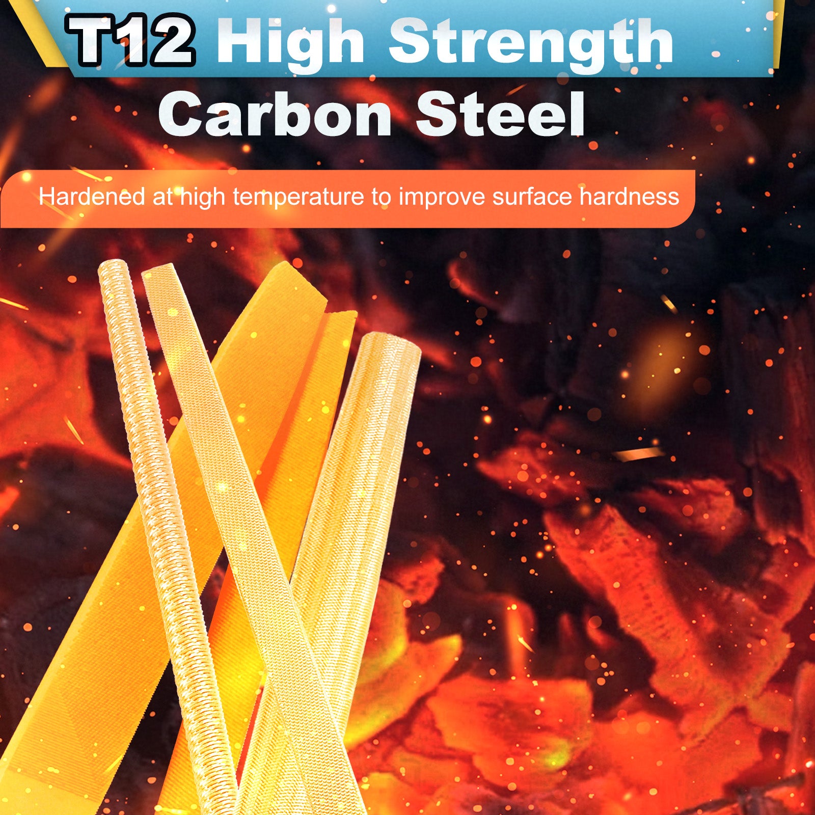 Premium High Carbon Steel Construction – Each file is forged from high-quality carbon steel for superior strength and durability. Precision-cut teeth are hardened and coated to provide excellent wear resistance, rust protection, and long-lasting stable performance even under heavy-duty use.