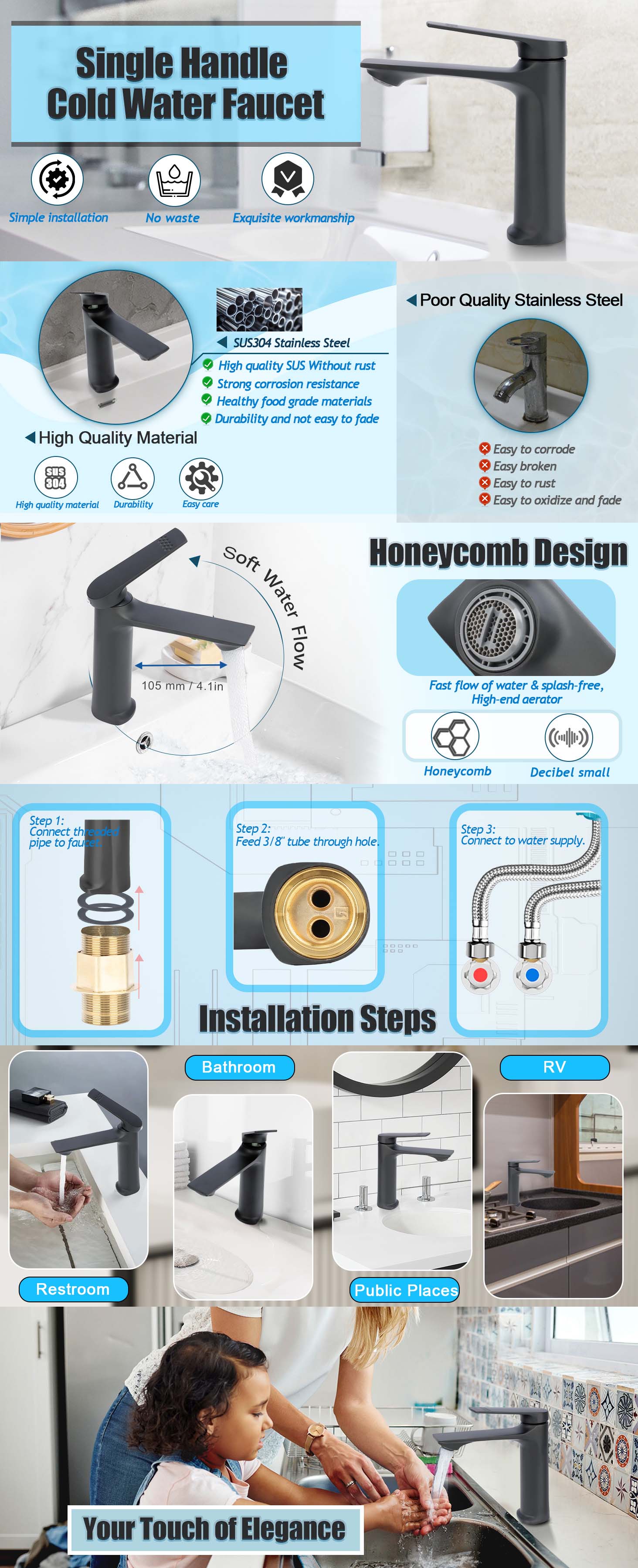 - Quick Single-Hole Installation: fits standard single-hole countertops (decorative cover plate not included). Comes with a 60 cm inlet hose (3/8" connection) for fast, time-saving installation