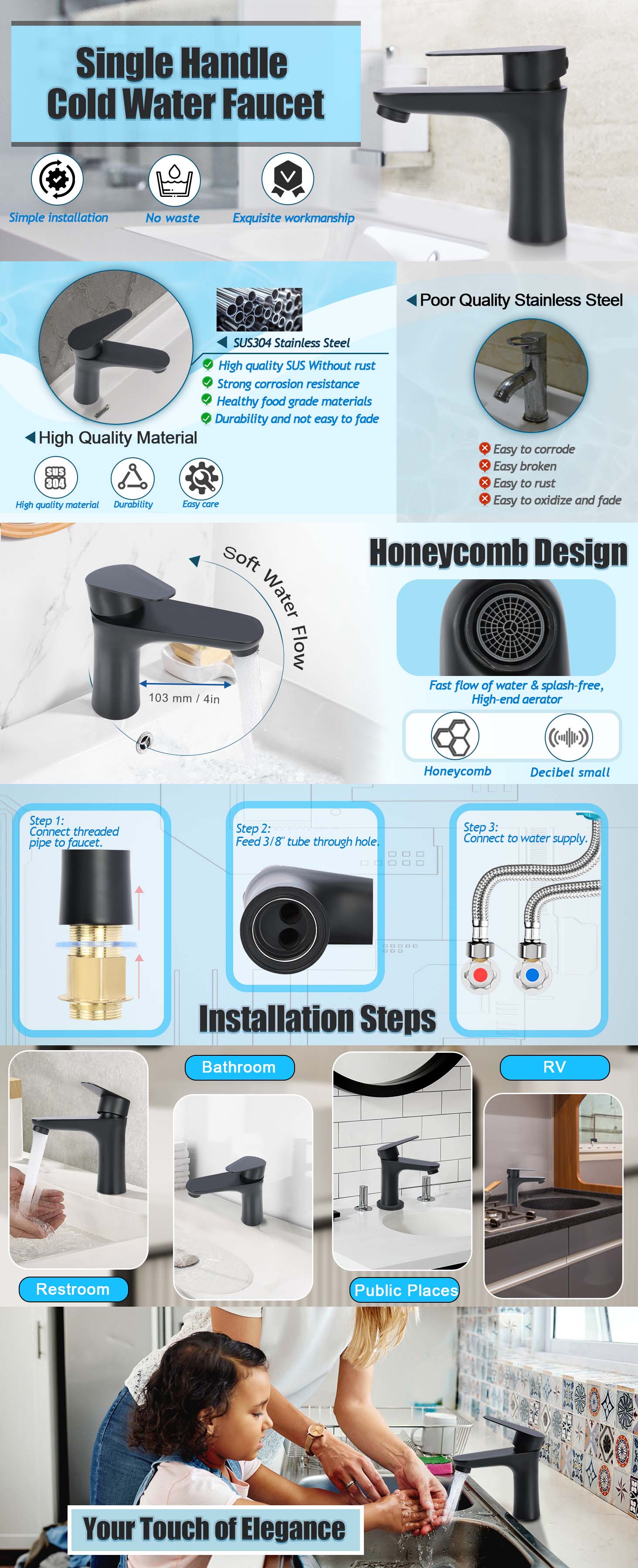 - Quick Single-Hole Installation: compatible with standard single-hole countertops (decorative cover plate not included). Comes with a 60 cm inlet hose (3/8" connection) for fast and easy setup