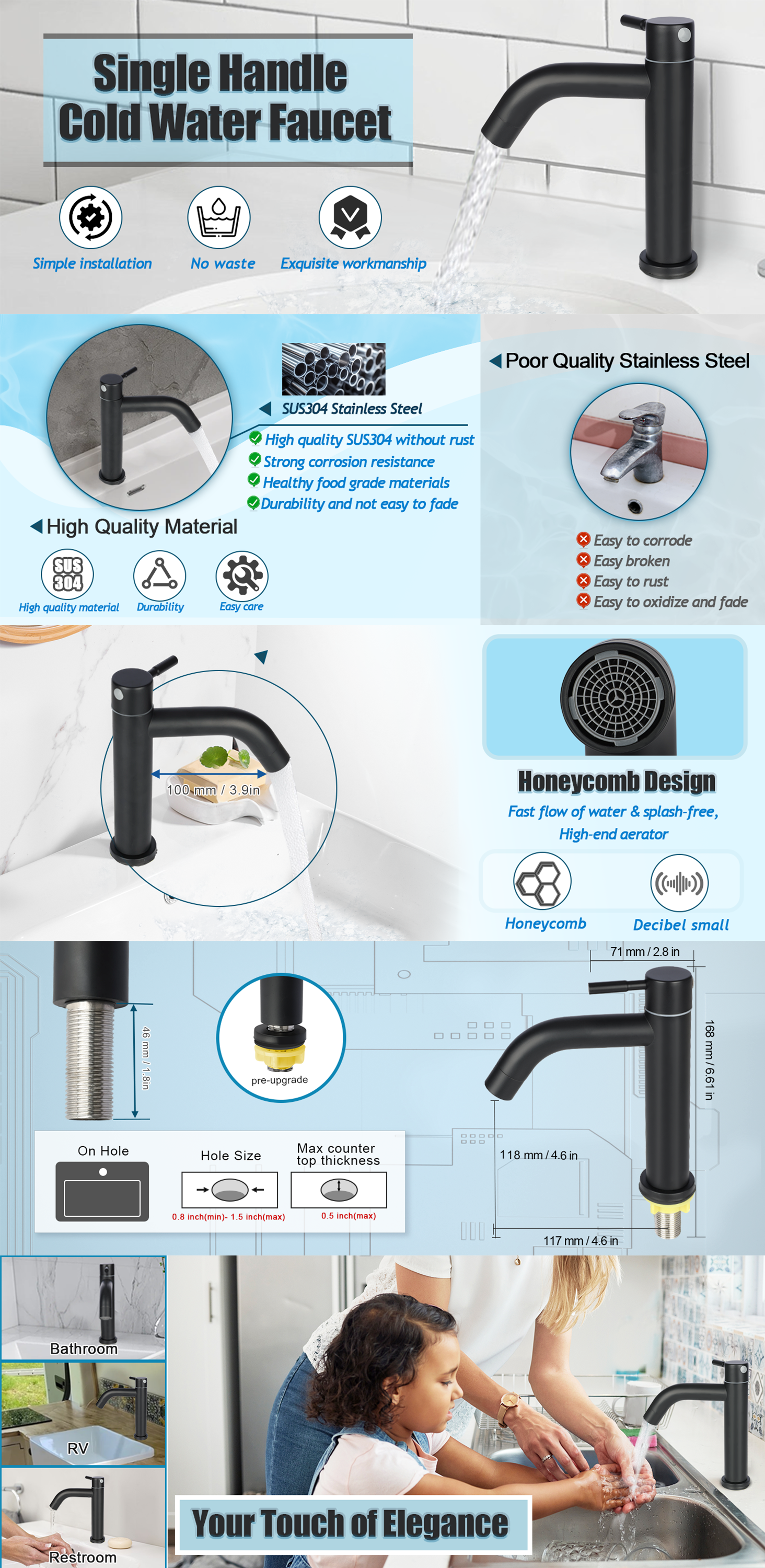 - Single-Hole Quick Installation: fits standard single-hole countertops (inlet hose not included and requires separate purchase). Saves time and effort during setup